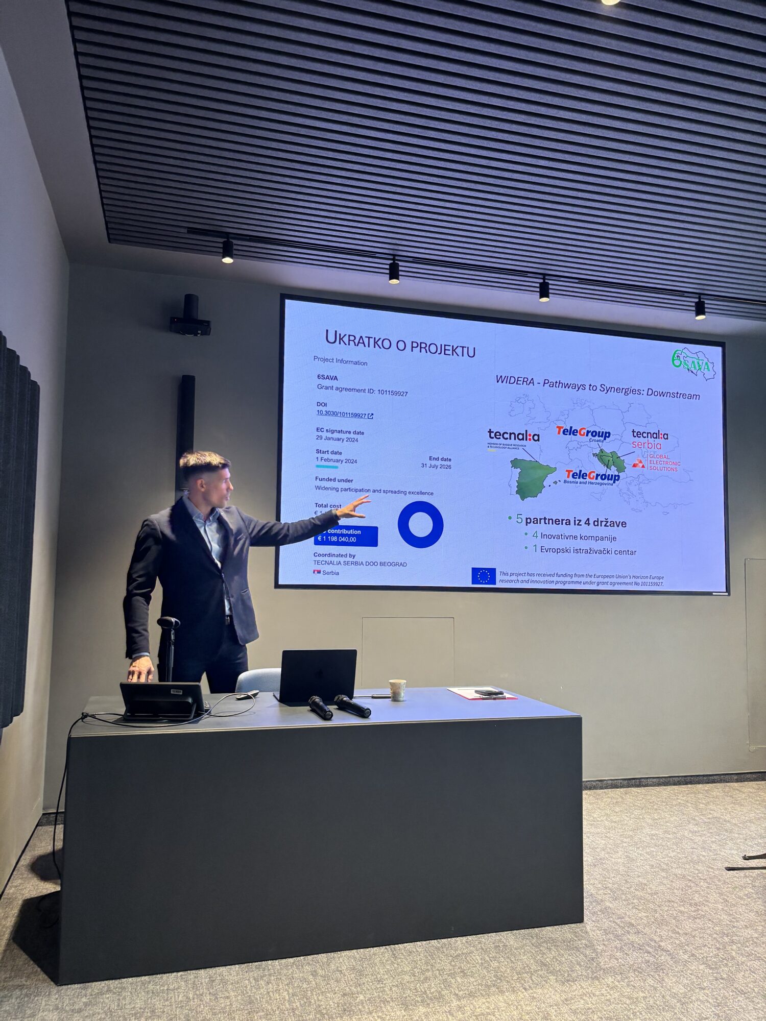 The afternoon transitioned into a vibrant, public networking event at the Palace of Science, drawing an impressive turnout of approximately 80 in-person attendees. Following welcoming remarks from Dr. Miloš Kostić of Tecnalia Serbia and the 6SAVA project, and Prof. dr Kosta Jovanović from the University of Belgrade (School of Electrical Engineering) and the CITADELS project, the session featured project presentations from SynGRID, presented by project partner IRI UL, and SynHealth, presented by the project coordinator Genos. The subsequent Q&A and networking cocktail saw an encouragingly high level of engagement from local stakeholders, sparking rich discussions that established a strong foundation for future cross-border collaborations.